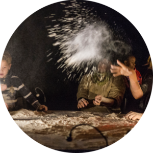 Ein theatraler Workshop mit Mehl für ein Publikum ab drei Jahren